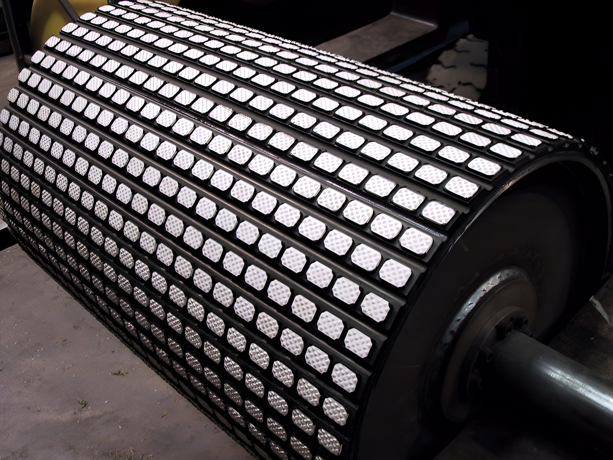 El revestimiento con caucho cerámico combina la resistencia al desgaste del caucho con la dureza de las incrustaciones cerámicas, creando una superficie extremadamente resistente al impacto y a la abrasión. Utilizamos cerámico de alúmina al 92%, lo que garantiza una protección superior en áreas críticas como las zonas de descarga en equipos mineros.